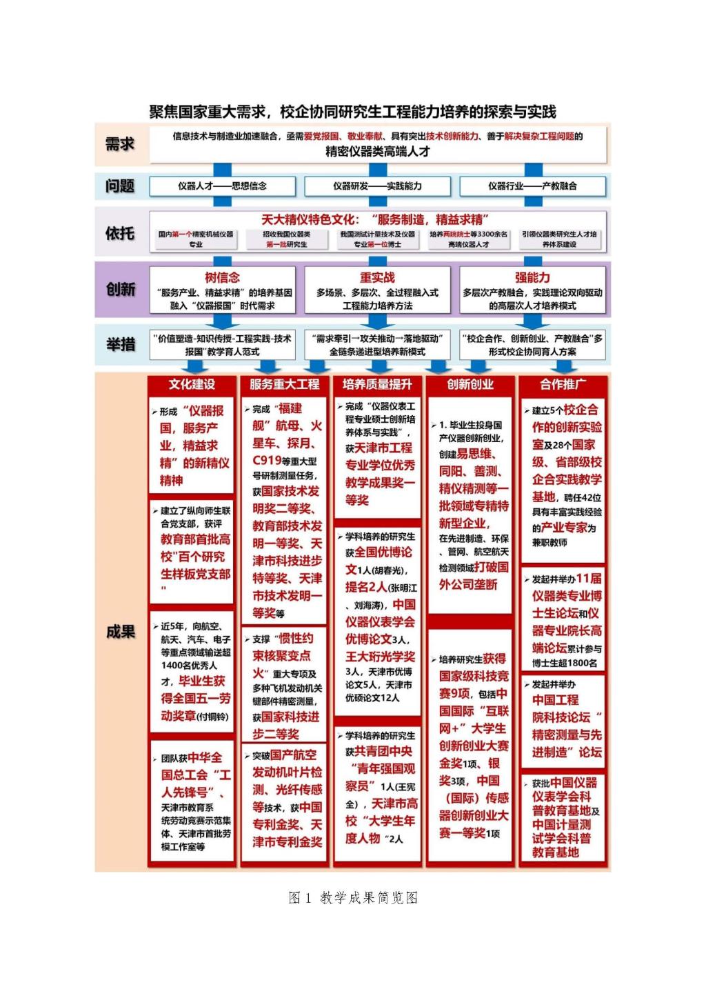 如图1,本成果秉承“服务制造、精益求精”天大精仪育人传统,聚焦国家重大需求,以国家重点型号任务培育研究生仪器报国的责任感和使命感;以国家重大工程融入式场景培养研究生多类型、多层次、全过程的工程实战能力;以重点产业需求双向驱动提升研究生凝练解决科学问题的能力。经十余年探索,形成“树信念、重实战、强能力”的研究生工程能力培养新方法,取得了一系列可推广可复制的突出成果: