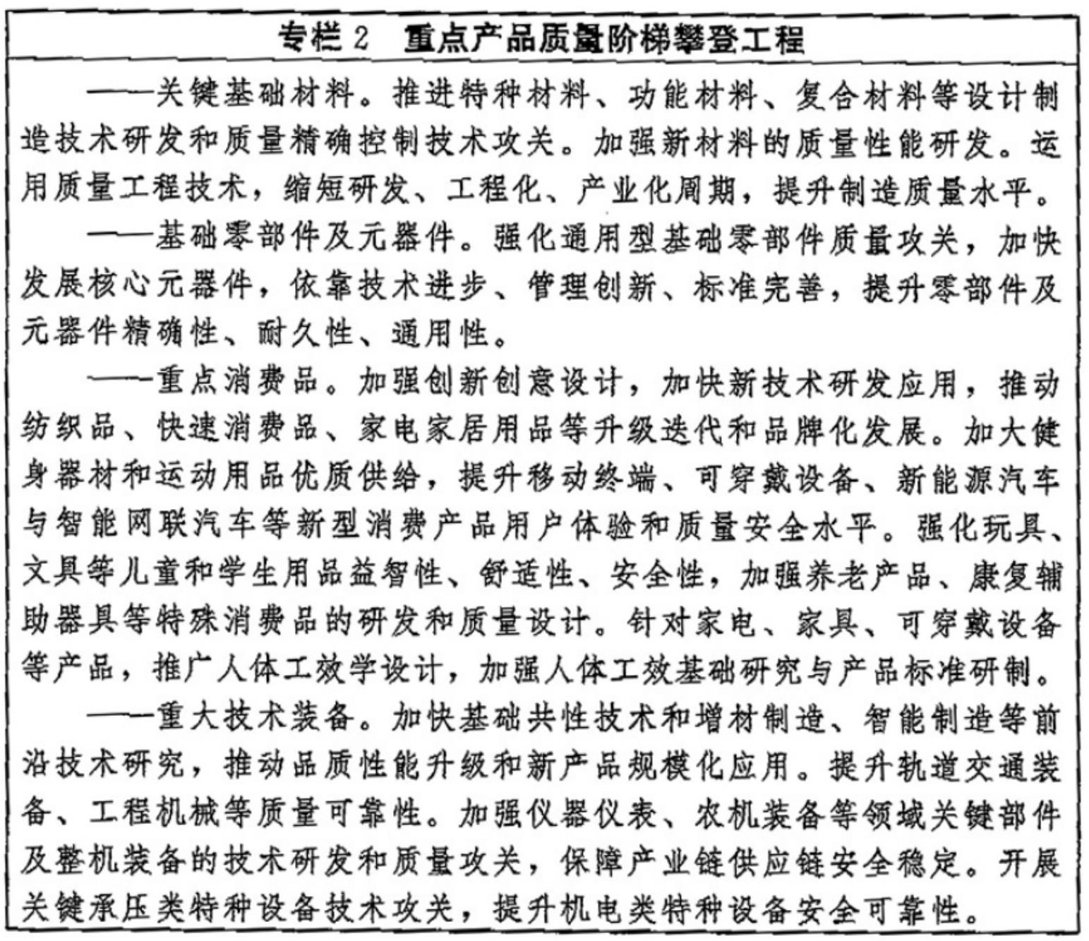 (六)强化产业基础质量支撑。聚焦产业基础质量短板,分行业实施产业基础质量提升工程,加强重点领域产业基础质量攻关,实现工程化突破和产业化应用。开展材料质量提升关键共性技术研发和应用验证,提高材料质量稳定性、一致性、适用性水平。改进基础零部件与元器件性能指标,提升可靠性、耐久性、先进性。推进基础制造工艺与质量管理、数字智能、网络技术深度融合,提高生产制造敏捷度和精益性。支持通用基础软件、工业软件、平台软件、应用软件工程化开发,实现工业质量分析与控制软件关键技术突破。加强技术创新、标准研制、计量测试、合格评定、知识产权、工业数据等产业技术基础能力建设,加快产业基础高级化进程。