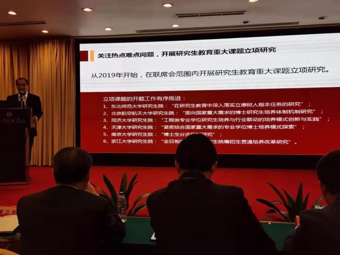 11月15日至16日,中国研究生院院长联席会(以下简称“联席会”)2019年年会、联席会成立20周年庆典大会暨ACGS International Forum(2019)在广州召开。会上公布了研究生教育重大课题资助项目立项结果,我院申报的“紧密结合国家重大需求的专业学位博士培养模式探索”获批立项。