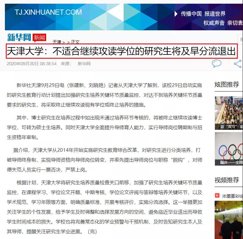 新华社——天津大学:不适合继续攻读学位的研究生将及早分流