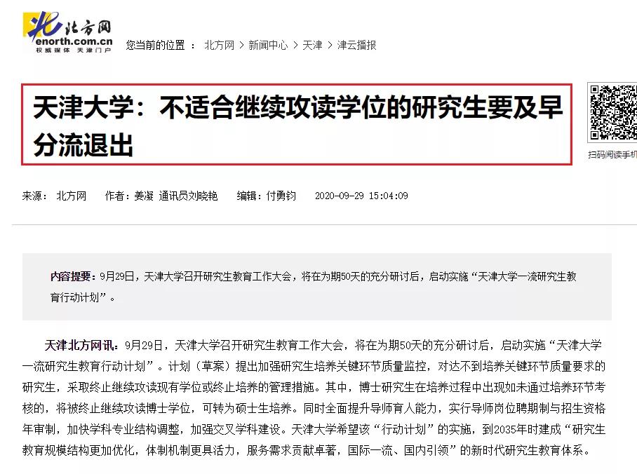 北方网——不适合继续攻读学位的研究生要及早分流退出