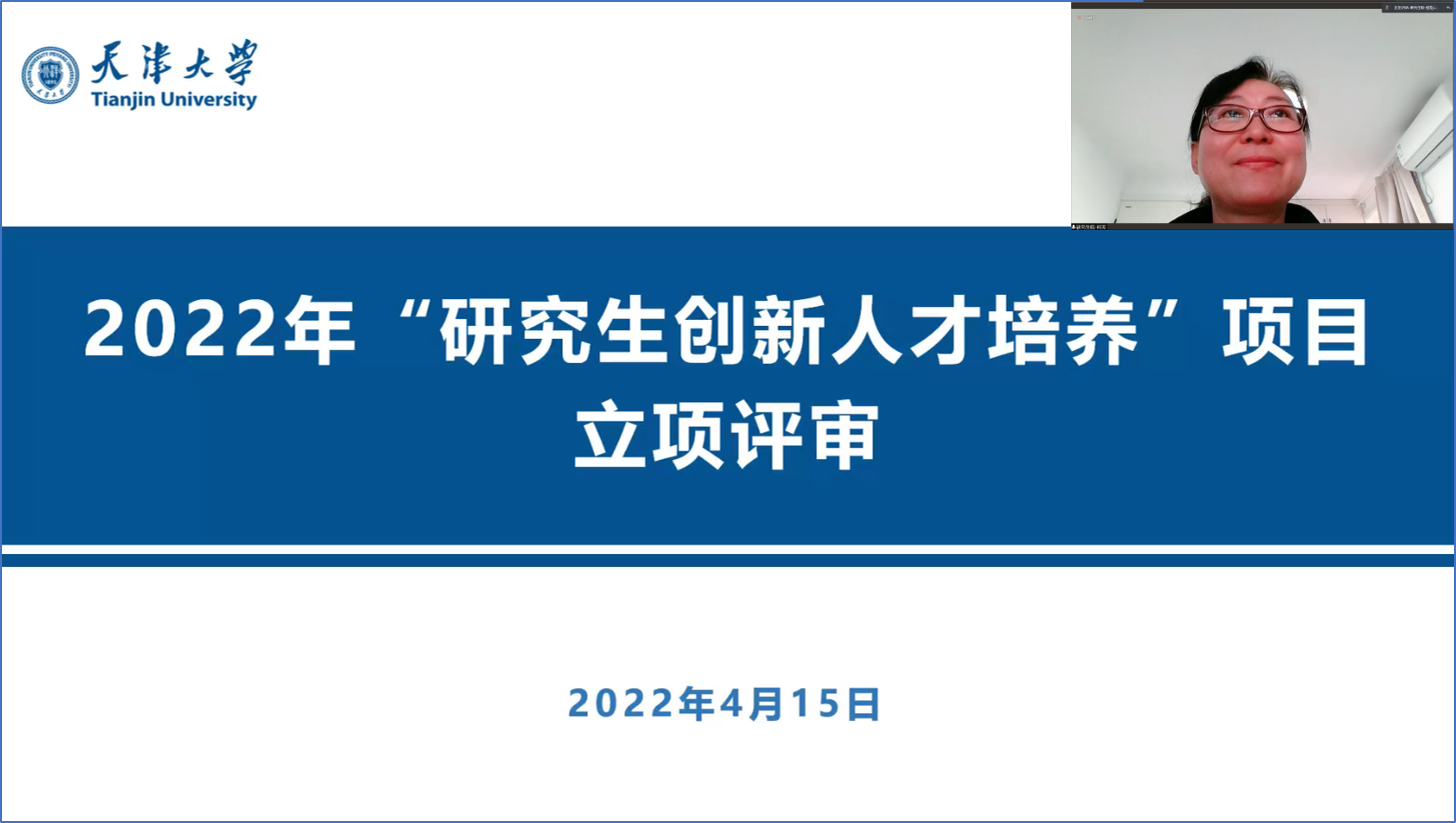 2022年4月15日,天津大学2022年度“研究生创新人才培养”项目立项评审会如期举行。为做好疫情防控工作,此次汇报和评审通过在线方式进行,切实保证研究生教育教学中心工作的有序有效推进。