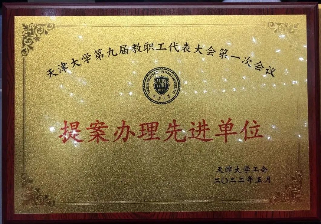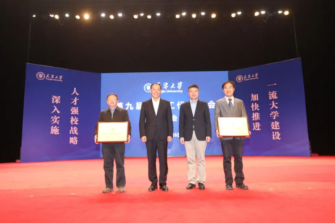 天津大学副校级干部谭欣宣读了《关于表彰第九届教职工代表大会第一次会议优秀提案和提案办理先进单位的决定》:评选《关于加快推进学分制执行体系建设的建议》等20件提案为优秀提案,授予机械学院李林安等20名提案人“金点子奖”。同时,授予研究生院、教务处“提案办理先进单位”荣誉称号。党委书记杨贤金、校长金东寒为获奖个人和单位颁奖。