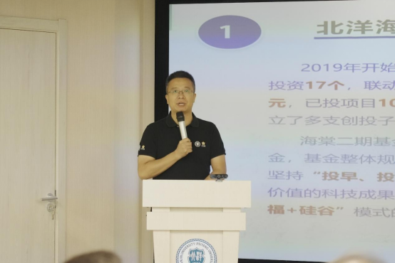 图6:北洋海棠基金发起合伙人、总经理、天大科技园总经理何勇军介绍北洋海棠创业投资种子基金