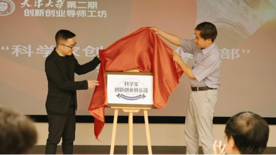 天津大学研究生院常务副院长李斌、宣怀学院副院长杨晓峰为“科学家创新创业俱乐部”揭牌。天津市科技创新发展中心副主任、正高级工程师马凤岭,天津大学研究生院常务副院长李斌,未来技术学院常务副院长原续波,宣怀学院副院长杨晓峰,北洋海棠基金发起合伙人、总经理、天大科技园总经理何勇军共同启动“北洋海棠创业投资种子基金”。