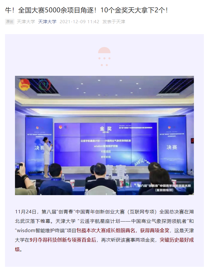 “创青春”中国青年创新创业大赛奖(1项金奖)(wisdom智能维护终端)