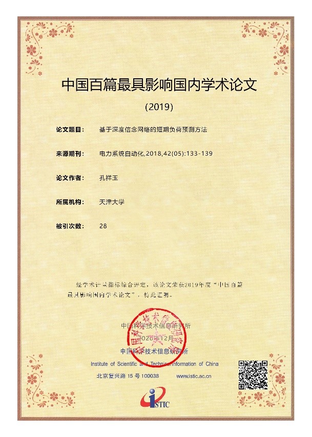 行业顶刊《中国电机工程学报》高影响力论文(2019年、2017年)