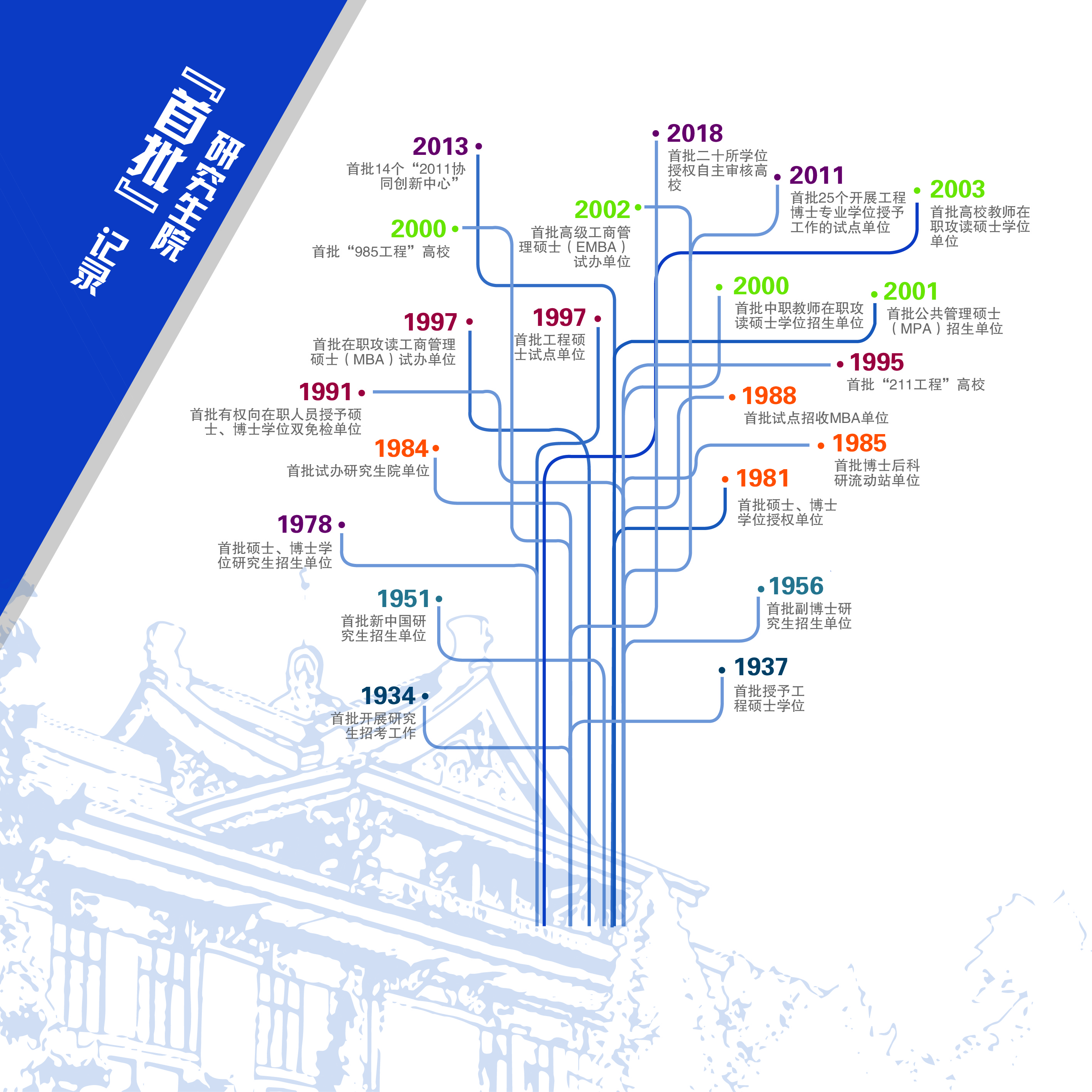 天津大学是我国最早开办研究生教育的院校之一,中国第一批公派留学生毕业于北洋大学,早在1935年即开始招收首批硕士研究生。1984年,经国务院批准,天津大学成为首批22所试办研究生院单位之一。