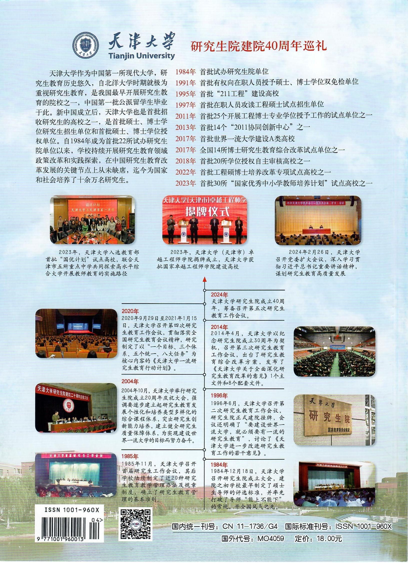 2024年4月出版的《学位与研究生教育》期刊封面彩页,专题报道了我校研究生院建院40周年巡礼、卓越工程人才培养、新时代研究生教育改革等内容。